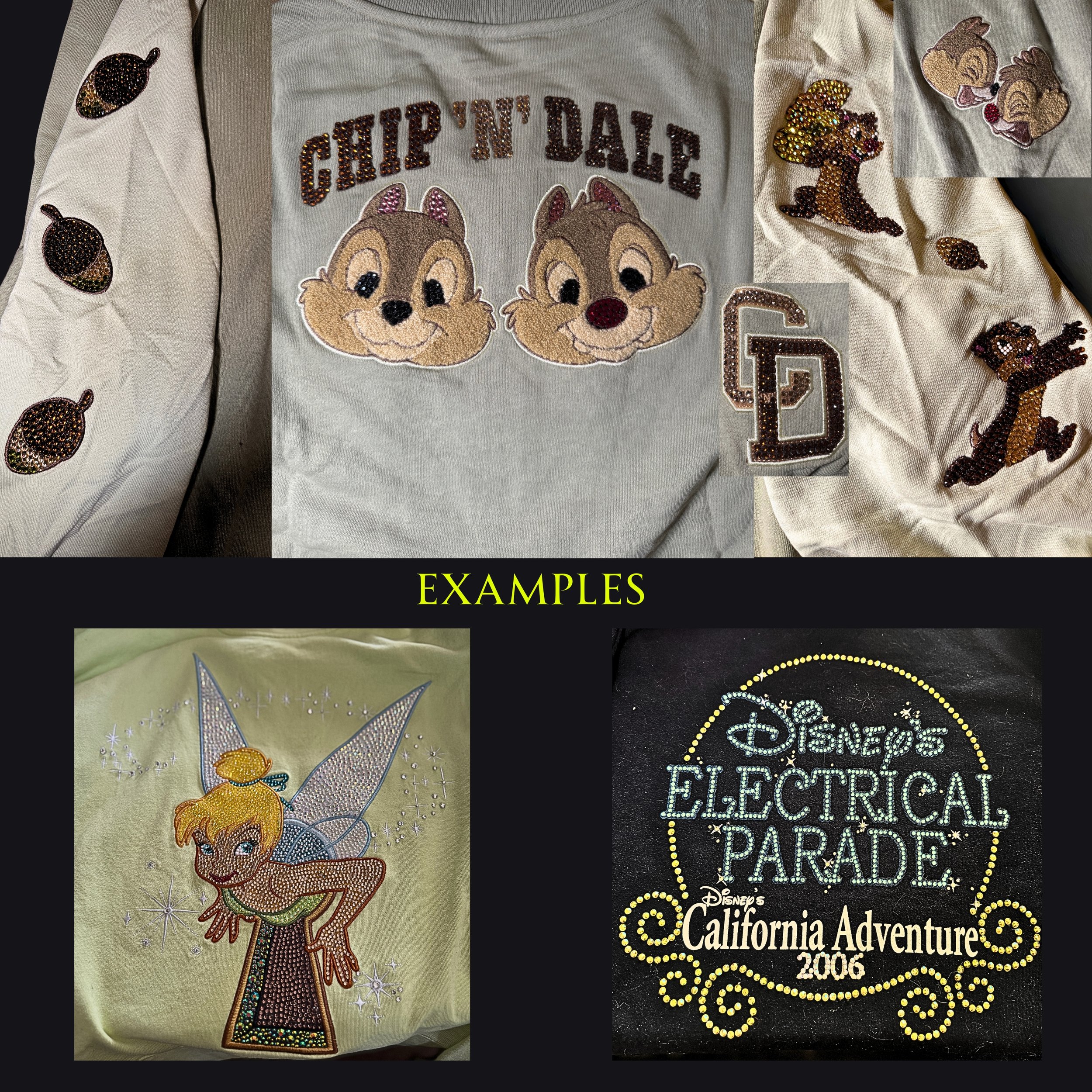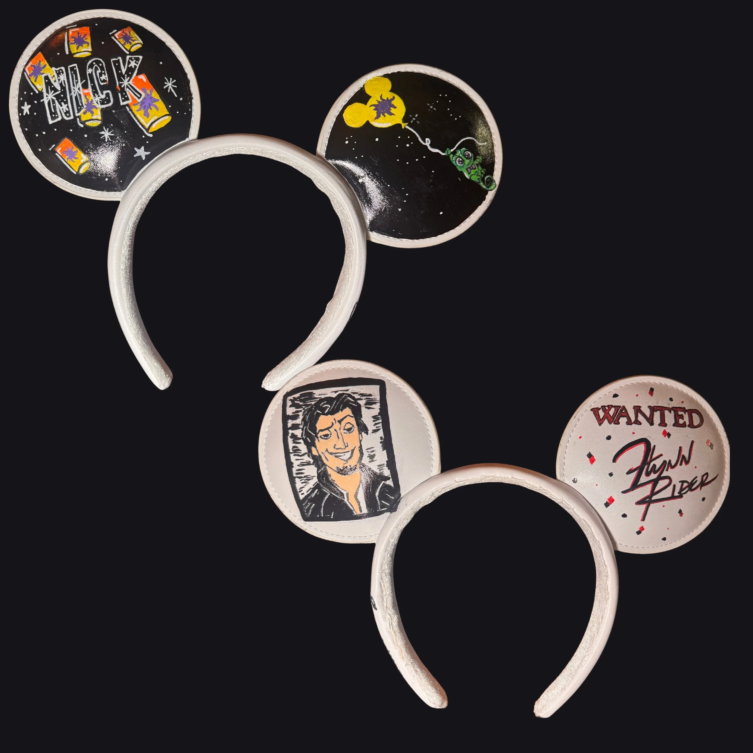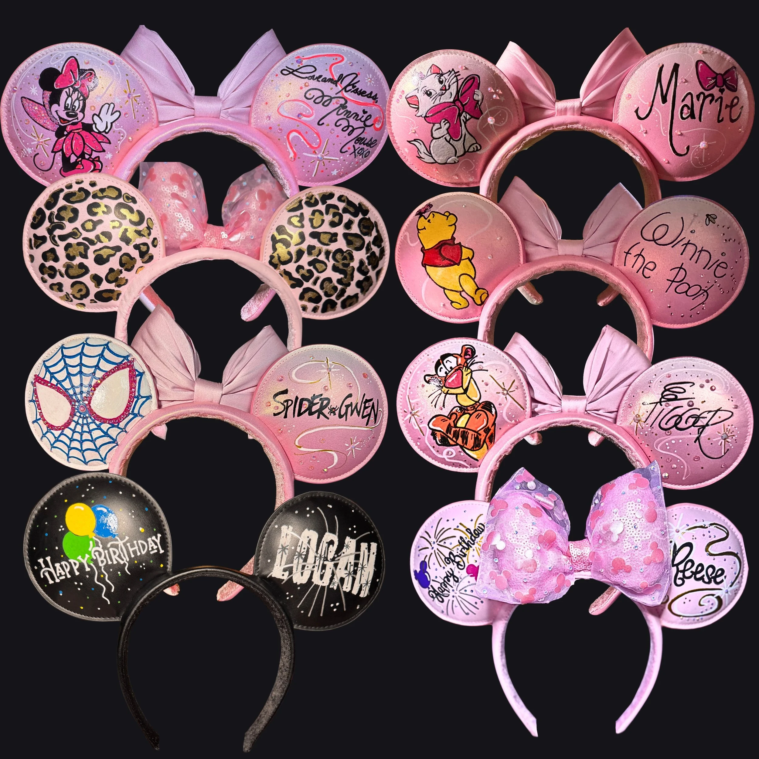 Ears will be purchased from Disneyland. Black or white options are currently available. When other options are available, the site will reflect other color choices. You can have your name on the front, Mickey balloons on the opposite side, and your favorite character on the back with their signature. If you would like to add a bow, it will be available to you as well.