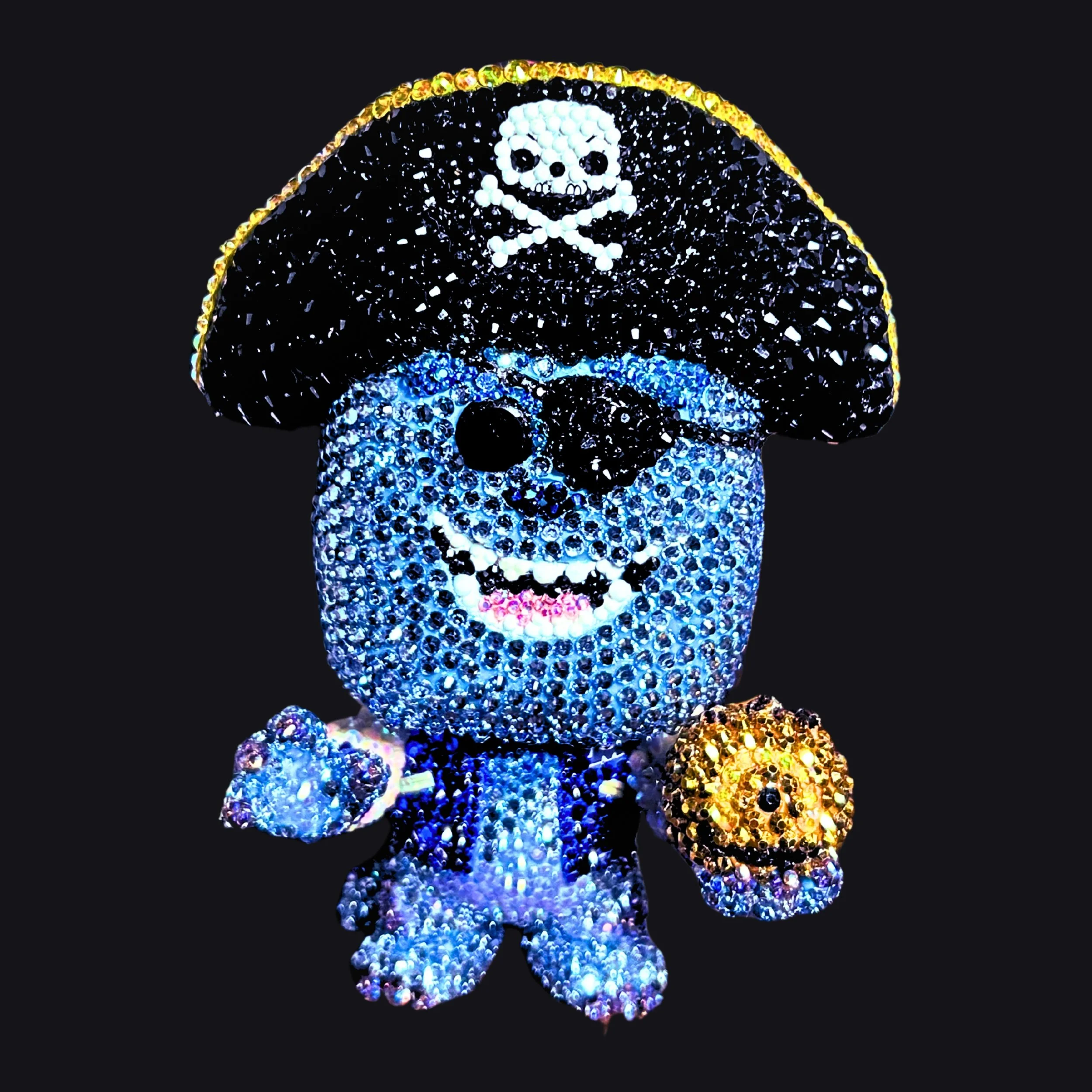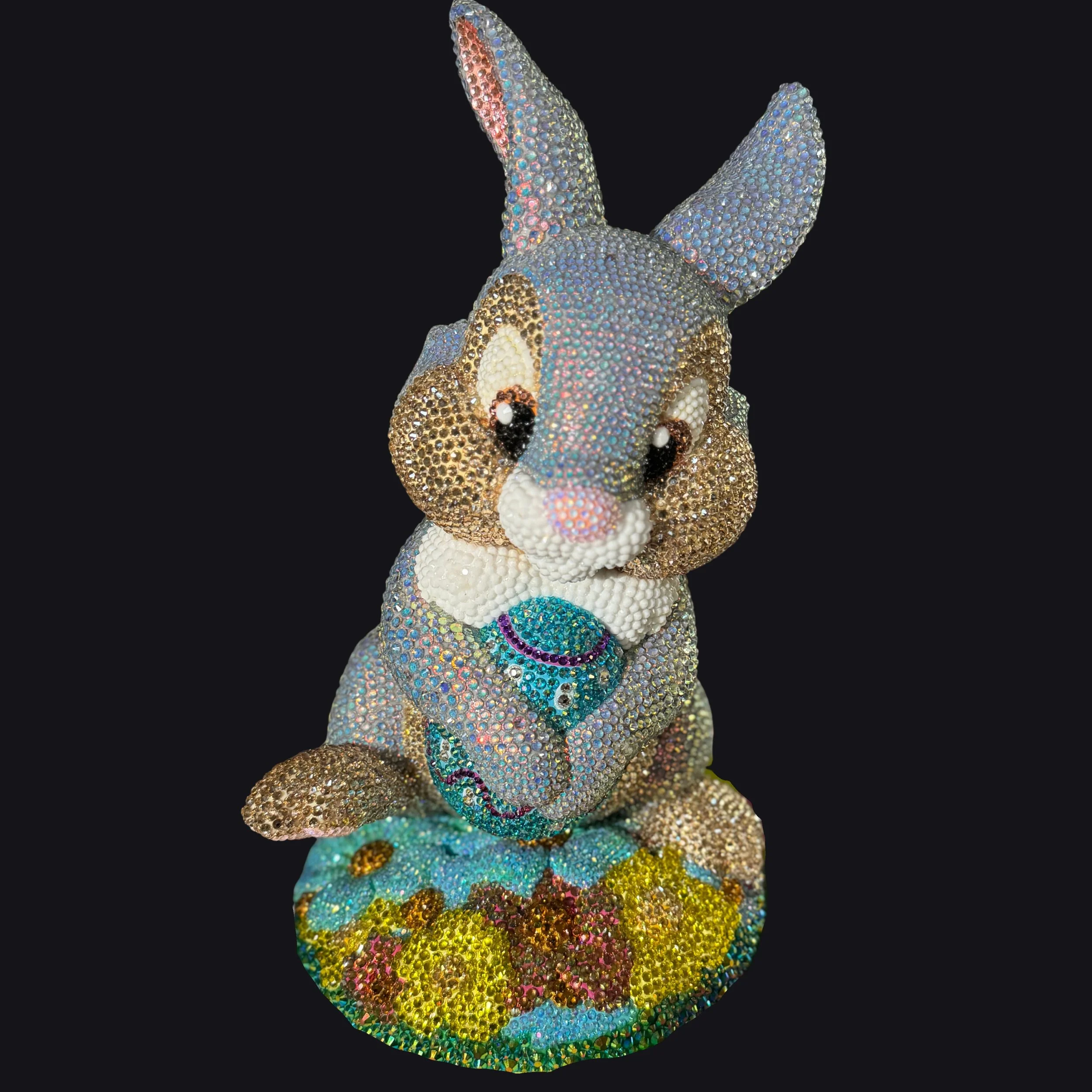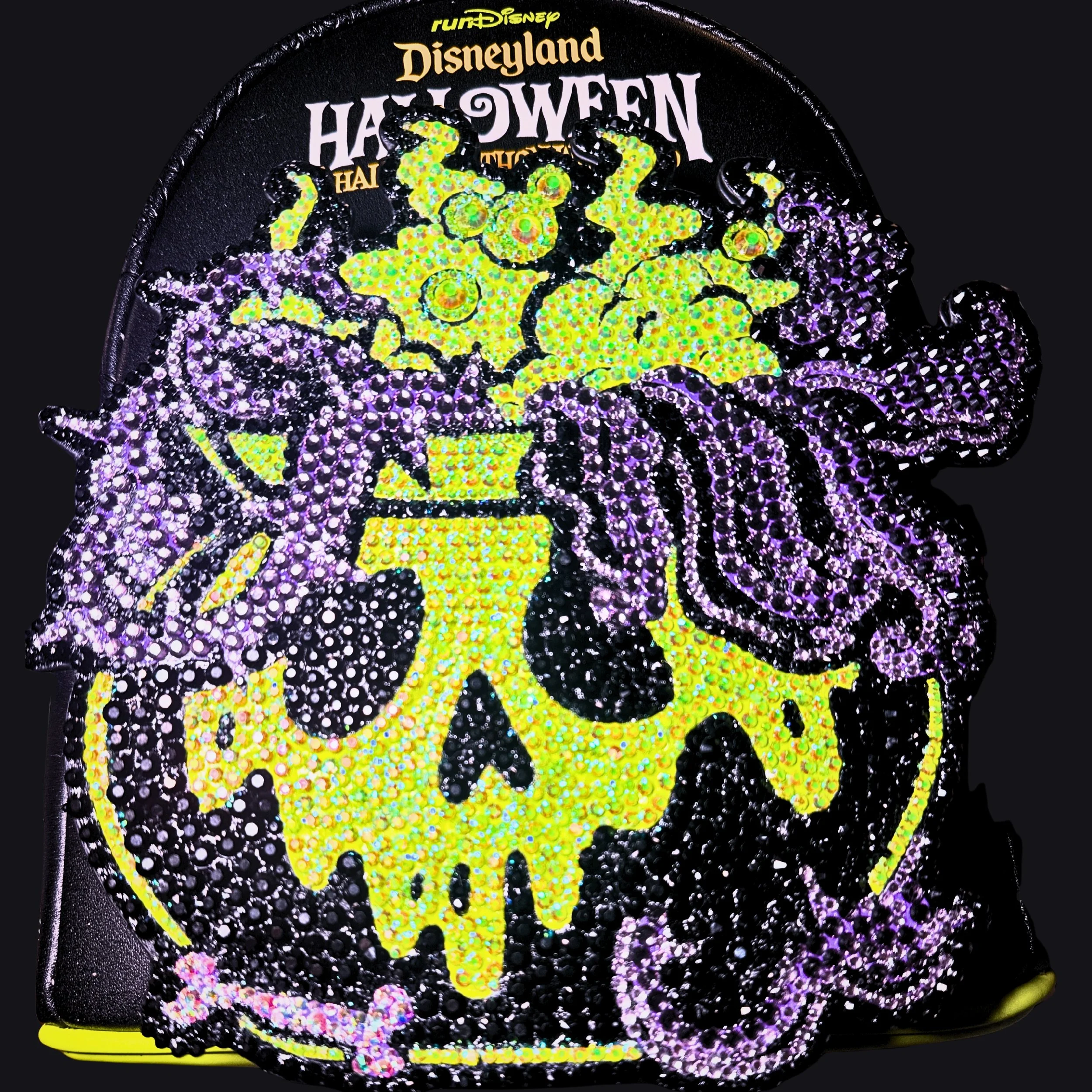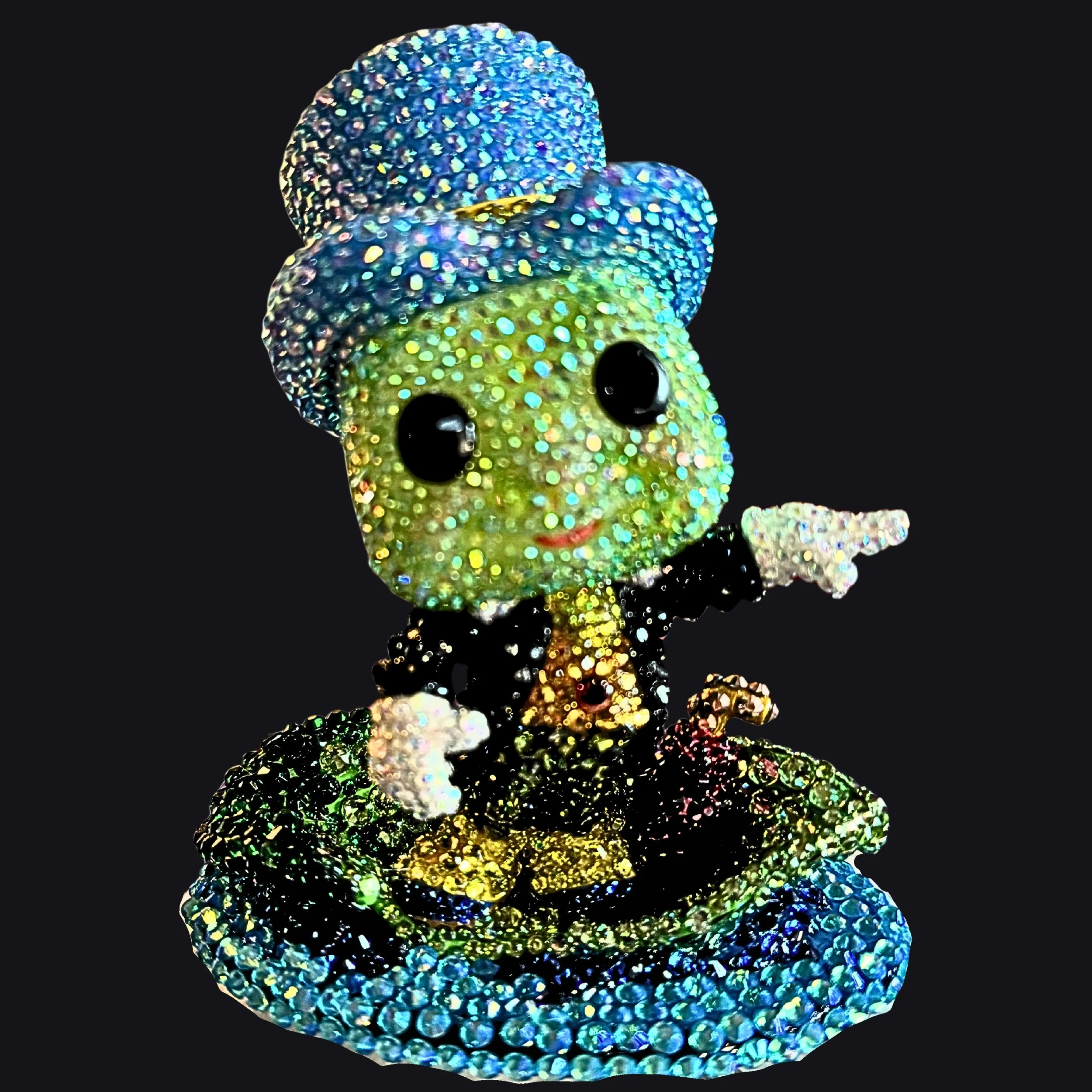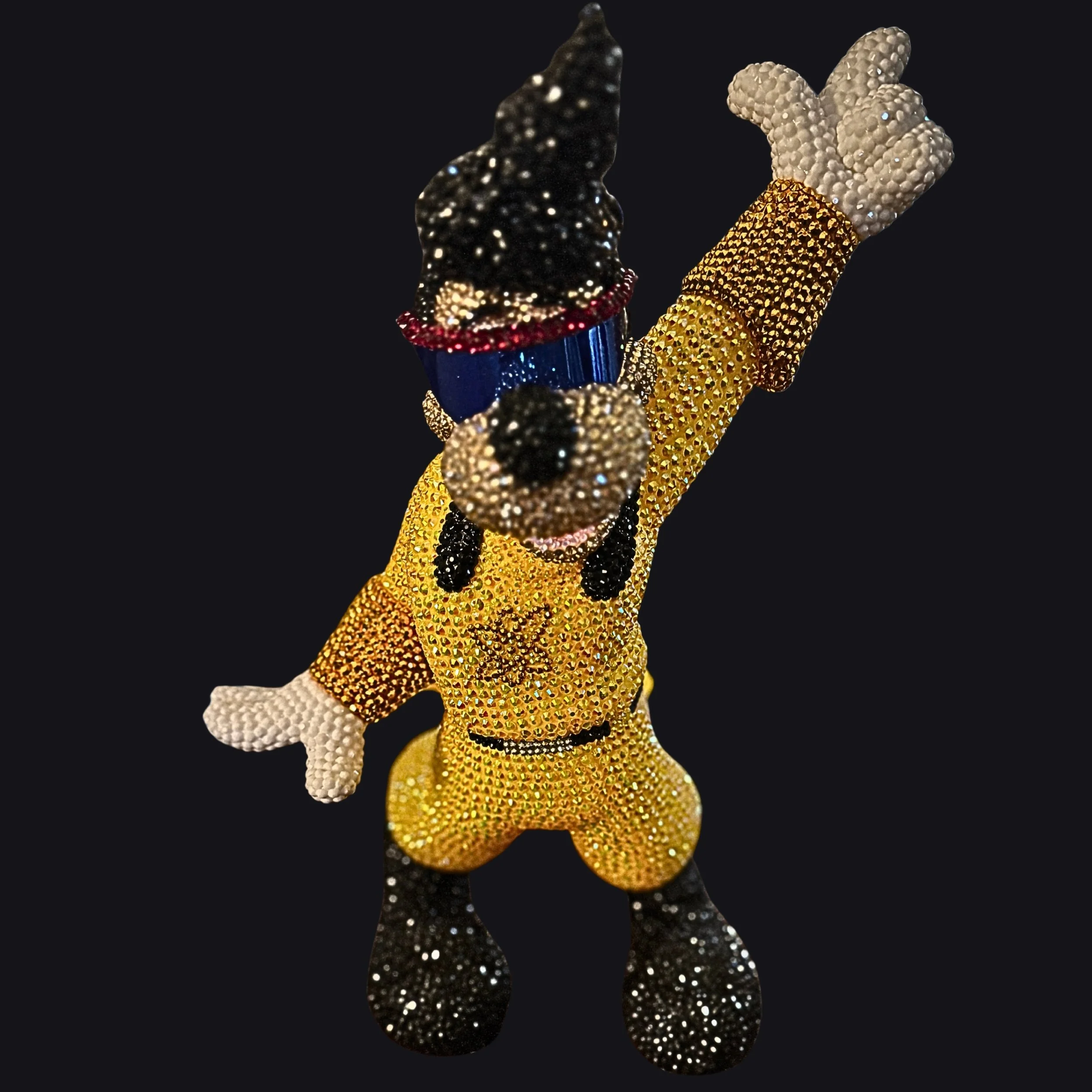 This bucket took forever and has so much detail and color…He’s hard to part with! With over 2000 rhinestones, this Popcorn Bucket will become an amazing conversation piece any time of the year. He was never used as a popcorn bucket. His mouth was sealed closed to help with balance once all the rhinestones were applied. He is sturdy!