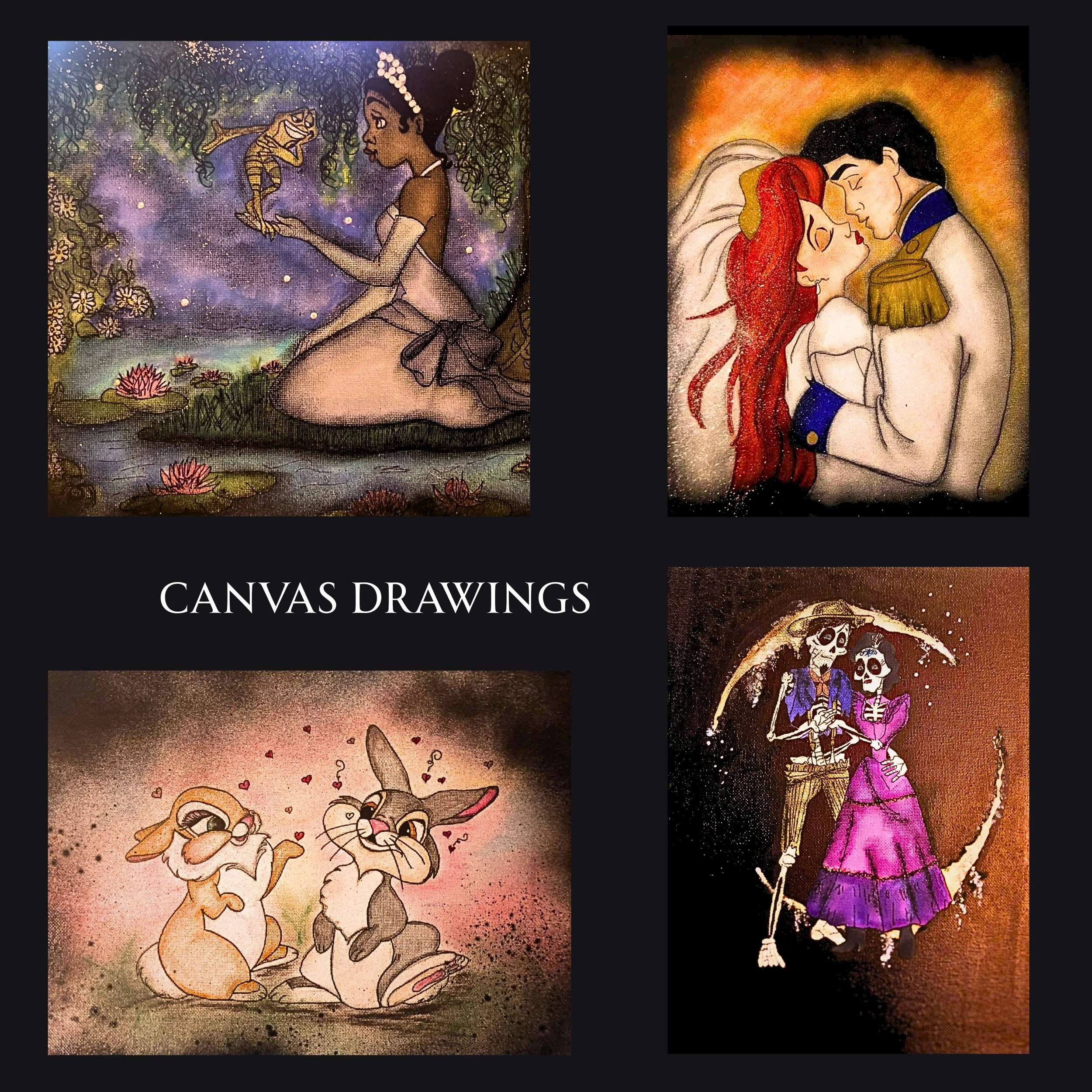 *Disclaimer: I do not mass-produce or have access to any wholesale merchandise. The things you see below were purchased retail for myself, friends, and family, or to keep me occupied while I was on Medical Leave. The only things I create “from scratch” are the drawings I add to the canvases I purchase at the craft store.