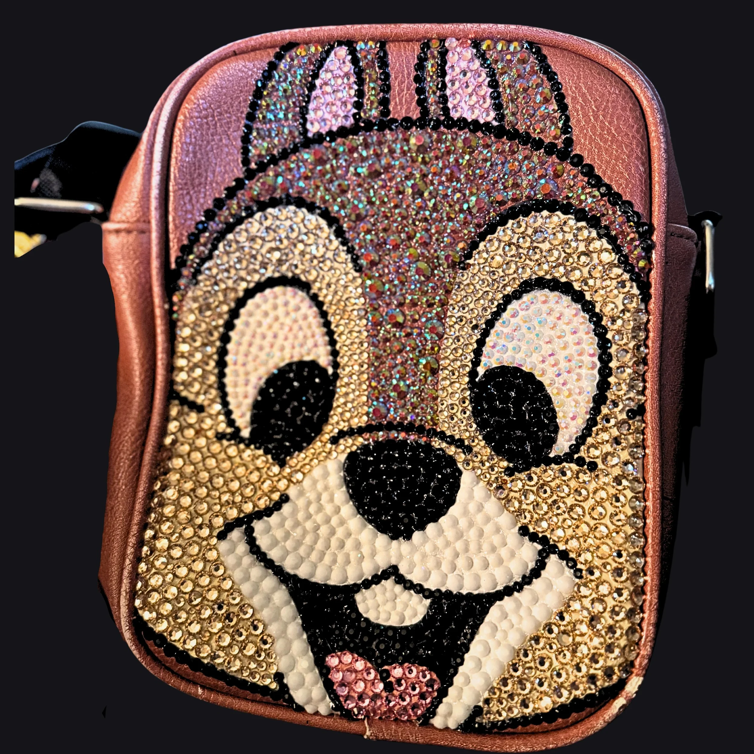 Large Double-Sided Canvas Tote. 1 side with plain, one side embellished. Snap closure and a pocket inside the bag. Never been used. Plenty of room for a full change of clothes and a laptop! Straps fit comfortably on the shoulders, and the bag rests around the hip area. Comes with a ‘fix it kit”. (Extra rhinestones and personal glue in the case of loose or lost rhinestones. It is common to experience some rhinestone losses. )
